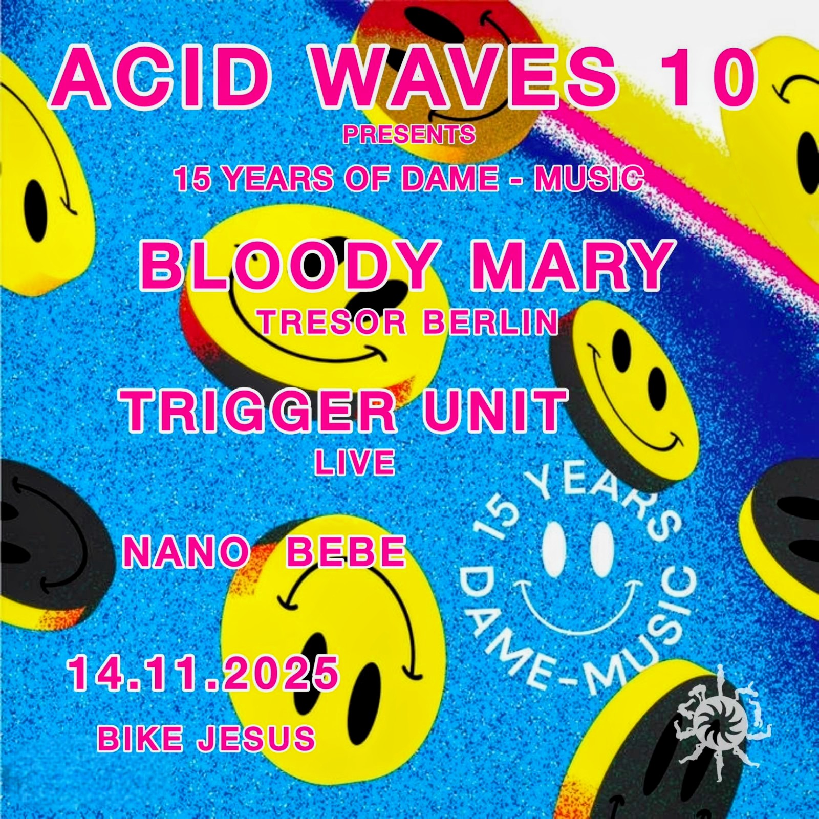 The 10th episode of our ACID WAVES party celebrates 15 years of the DAME – MUSIC label. For this special evening, its owner and resident of the Berlin club Tresor Bloody Mary will come and play a special 3-hour set for this evening.Dame-Music was fonded by Bloody Mary in 2010.