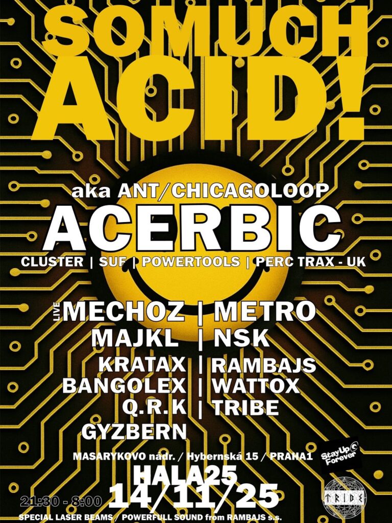 A legend of the British underground acid techno scene, also known as Ant or Chicago Loop, delivering dance floor killers for years on legendary labels such as Cluster, Hydraulix, MaximumMinimum, Tronic, Powertools, and Perc Trax. Highly respected hard techno/raw acid techno producer, actively collaborating for many years with Chris Liberator, Dave the Drummer, Geezer, and KN – finally performing in the Czech Republic for the first time!!!