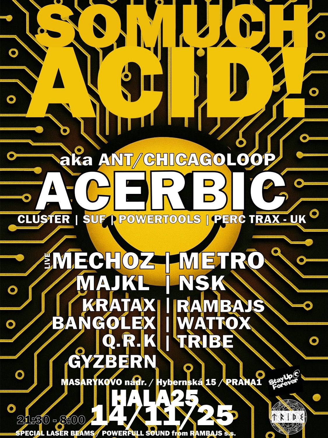 Another in the TRIBE series of raves – this time in an acid techno / tekno style set in a unique warehouse – in the former post office building at Masaryk Station in the center of PRAGUE!
