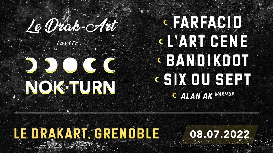 Le Drak-Art invite NOK.TURN Farfacid (NOK.TURN / Amnexia)Live Hardprog to Hardhttps://www.instagram.com/farfacid_/https://soundcloud.com/drmiaou L’art-cène (Cult Collective)Live Mental Corehttps://soundcloud.com/lartcenehttps://www.instagram.com/lart_cene/ Bandikoot (Cult Collective)Live Mentalcorehttps://www.instagram.com/_bandikoot_/https://soundcloud.com/bandikooot Six ou Sept (Cult Collective)Live Acidcorehttps://www.instagram.com/six_ou_sept/https://soundcloud.com/six-ou-sept Alan AKWarmup Acid Tekno Billetterie : 8,59€ en préventehttps://ypl.me/mUc 10€ sur place Informations générales : 23h00-7h00 163 cours Berriat, Grenoble Entrée interdite aux mineurs Aucun comportement violent, sexiste, raciste, […]